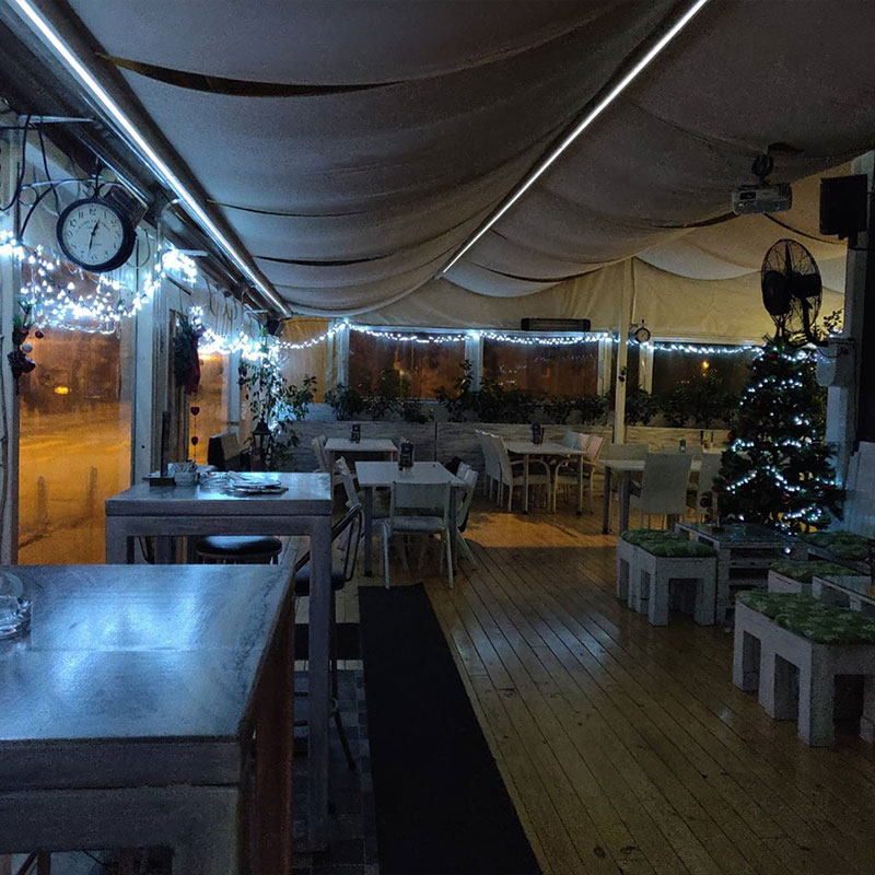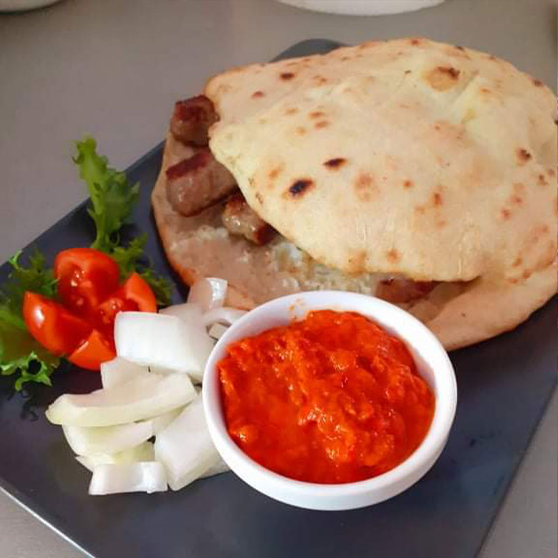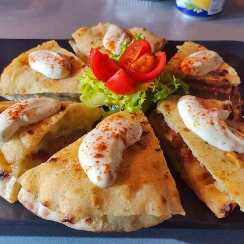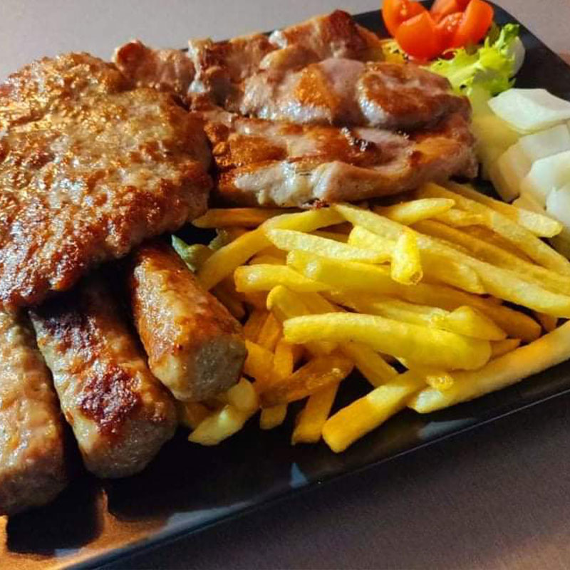 Galerija Miješano meso s pomfritom Mix mazalica Pržene lignje s pomfritom i tartarom Teleća jetrica Šiš ćevapi Papaline s pomfritom Ćevapi u lepinji Pileća salata Ćevapi u kajmaku Spexburger Ambijent Zatvorena terasa Interijer Interijer Interijer Interijer